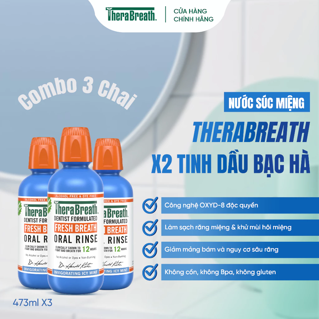 Combo 3 chai Nước súc miệng TheraBreath Icy Mint Fresh Breath