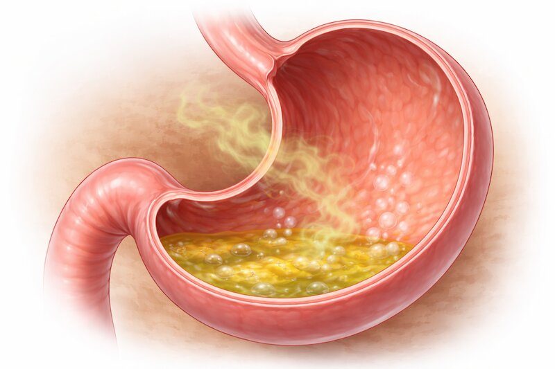 - Sự tích tụ dịch vị: Dạ dày trống rỗng vẫn liên tục tiết axit. Khi không có thức ăn để trung hòa, các enzym tiêu hóa và axit dư thừa có thể tạo ra mùi hôi đẩy ngược lên vùng hầu họng.