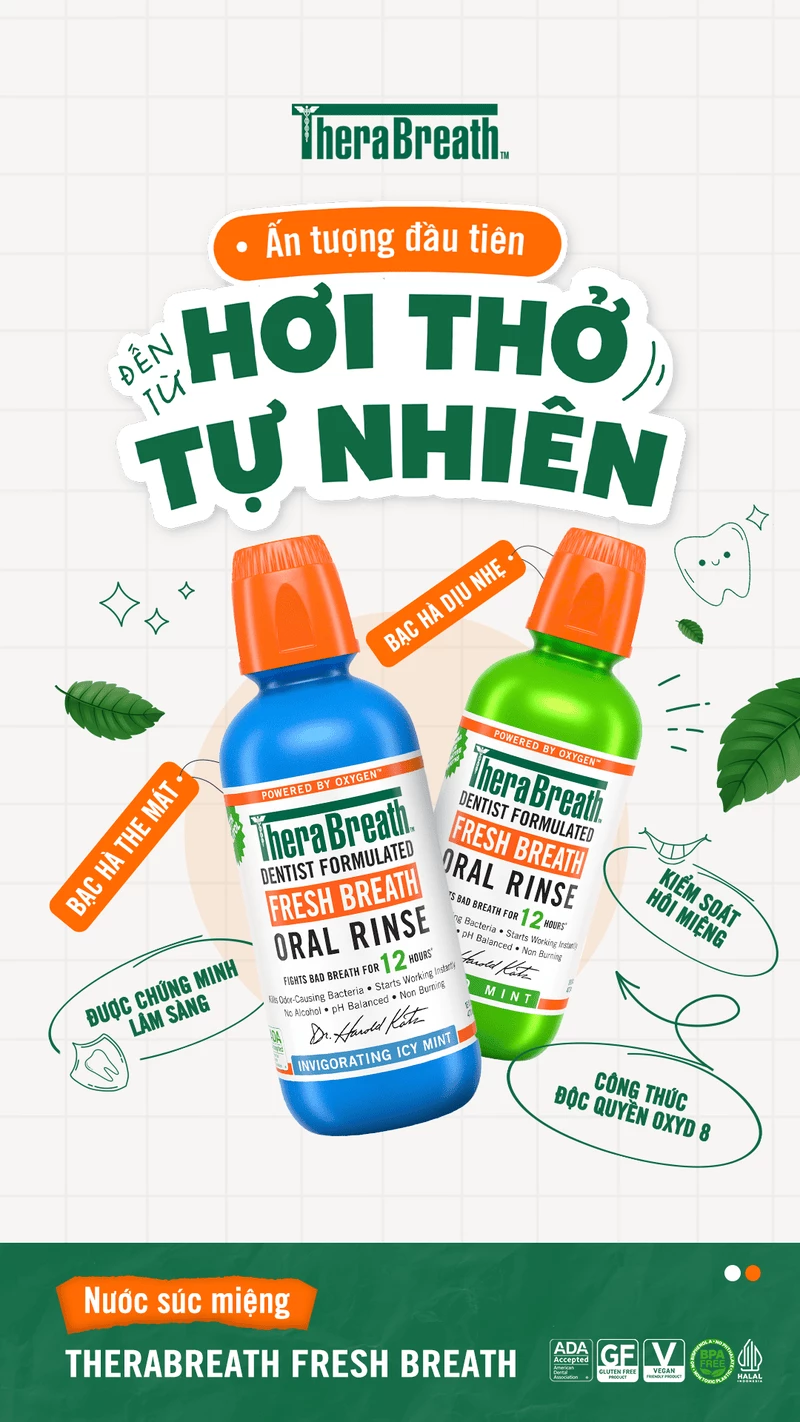 - TheraBreath Fresh Breath Oral Rinse (Sodium Chlorite, không cồn).
