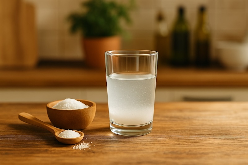 - Pha 1/ 2 thìa cà phê baking soda (≈ 2 g) với 1 cốc nước ấm 250 ml.